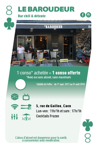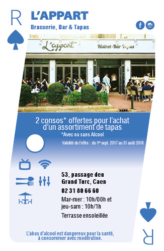 – un carnet de réduction à 9 € qui t’offre 400 € de réduction et d’offerts dans les bars, restaurants et clubs de la ville de Caen